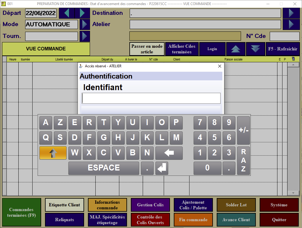 But : tracer certaines actions réalisées par les opérateurs à partir de la préparation de commande TSE et Pocket. Pour ce faire, l’opérateur doit s’authentifier (profil atelier)