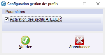 Option disponible dans le menu sous Données de base >> Paramètres >> Profils atelier