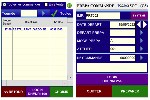 Ensuite, le bouton ‘LOGIN’ permet de se désauthentifier ou de changer d’utilisateur. Ce bouton est disponible sur l’écran de la liste des commandes et sur l’écran principal.