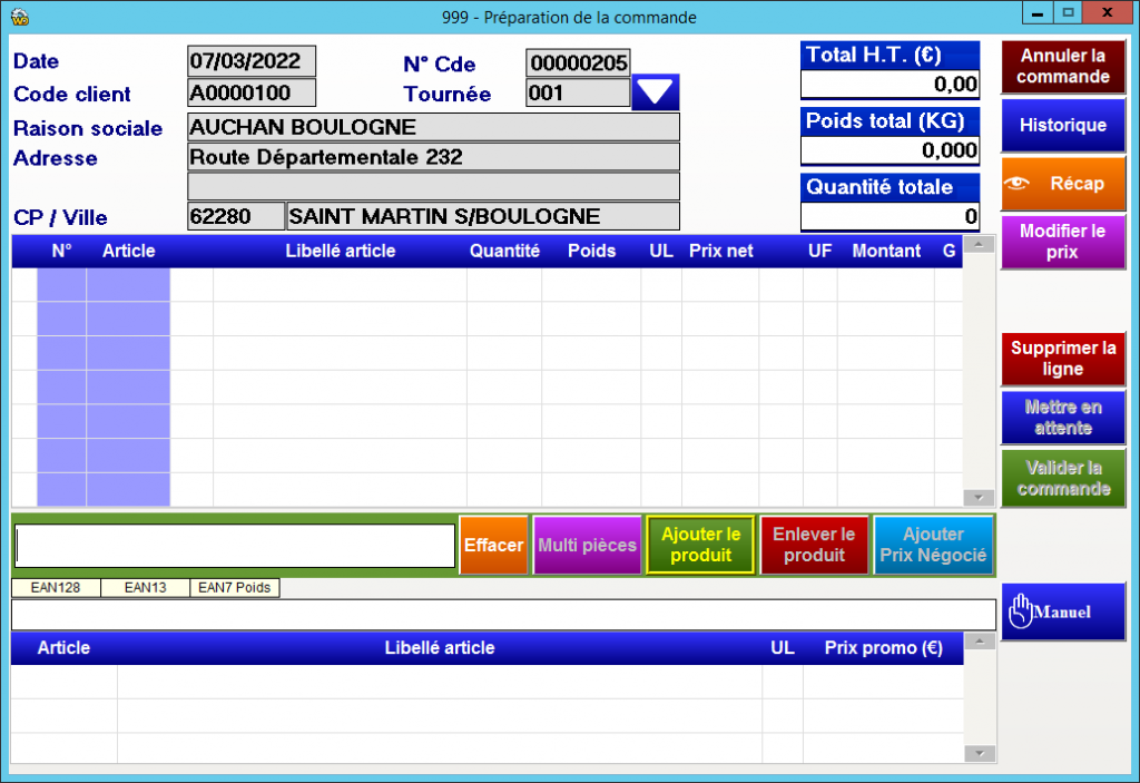 Ce programme n’effectue aucun étiquetage (colis, pièce) et ne gère pas d’appareil connecté tel que des plateaux de pesée et combinés d’étiquetage