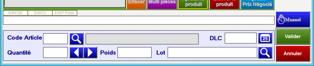 Une saisie manuelle des données de l’article à préparer est disponible s’il n’y a pas la possibilité de flasher un code barre.