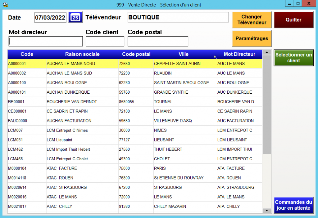 Sélection d’un client