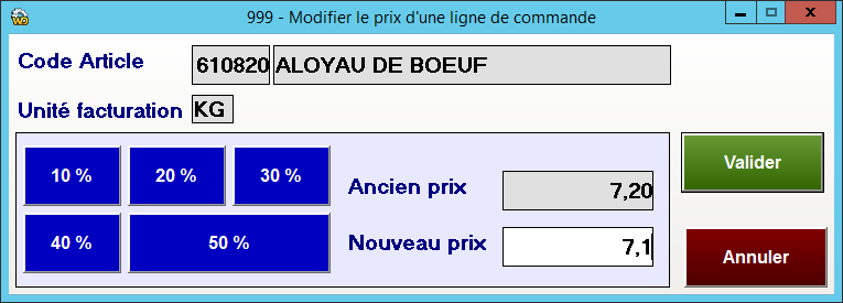 Par défaut lors de la validation d’un article, le prix en vigueur pour le client est calculé, l’opérateur peut par la suite modifier ce prix.