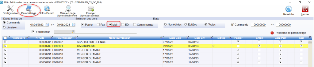 Paramétrage Émission du BCA & E-mail Fournisseur