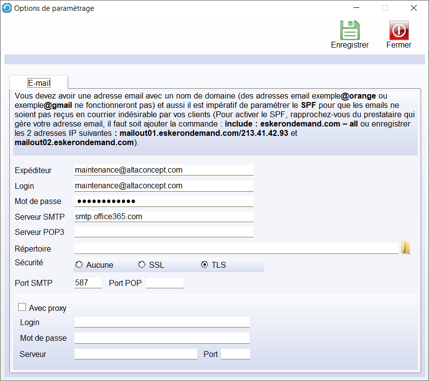 Précisions avec smtp.office365.com