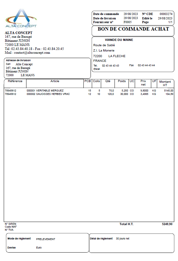 Achats / Commandes / Bon de commande