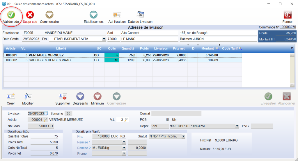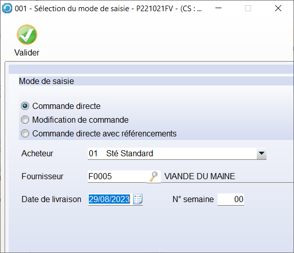 Une fois la saisie de commande auprès du Fournisseur effectuée, il faut la valider.