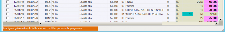 Suite au clic du bouton rafraichir le programme recherche des lignes de commandes associées à la sélection, si une ligne de commande est verrouillée par un autre programme, la ligne s’affiche en grisée et l’on ne peut pas cocher cette ligne pour la solder. Un libellé informe l’utilisateur de ce verrouillage.