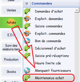 Le chemin d’accès : Achats > Commandes > Maintenance achat
