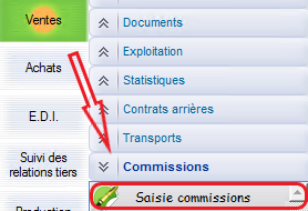 Le chemin d’accès : Ventes > Commissions > Saisie commissions