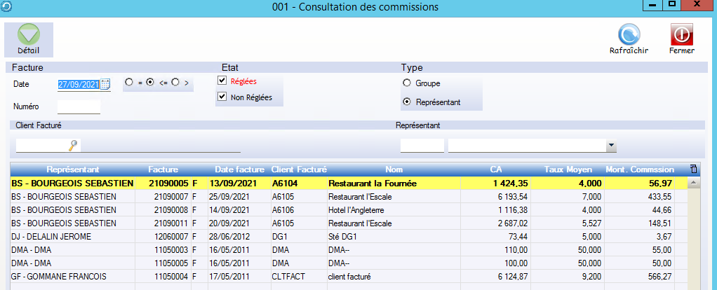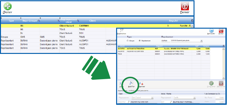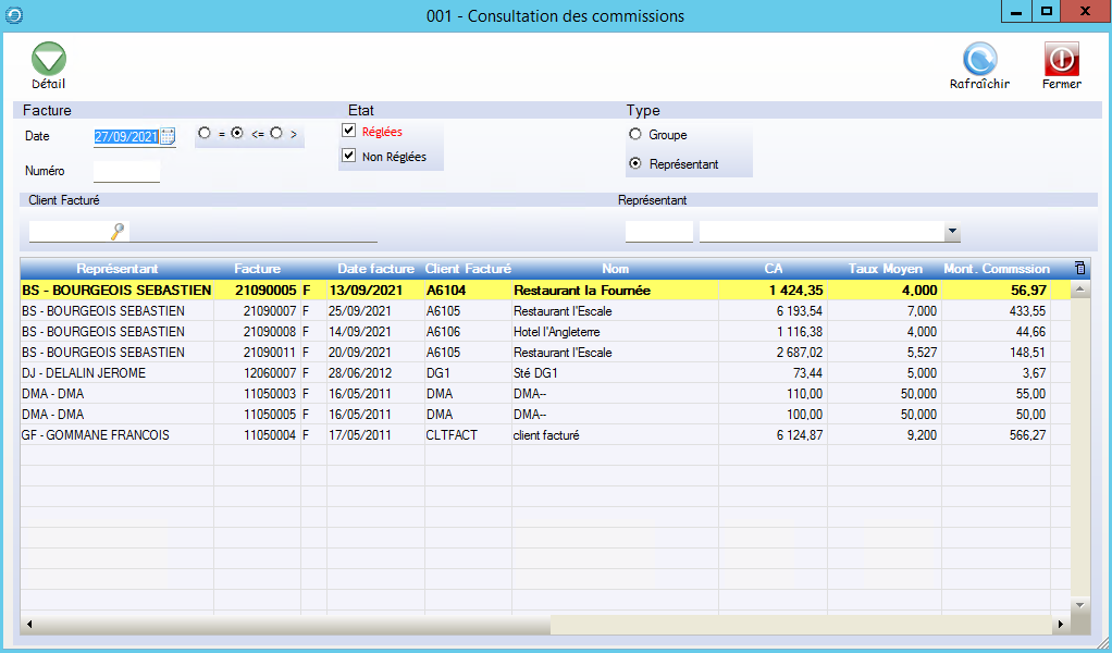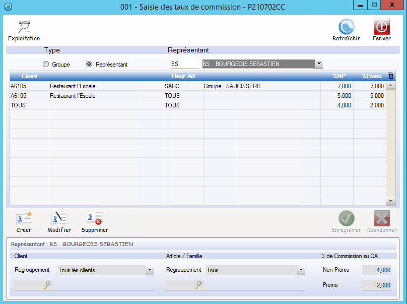 On peut effectuer des commissions soit pour l’ensemble des clients du représentant, soit pour un client particulier.
