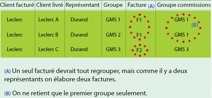 Remarque : il n’y a pas d’éclatement de factures et c’est le groupe représentant du 1er BL qui est pris en compte. Ce cas est rare car en général, si un groupe change le représentant change aussi.