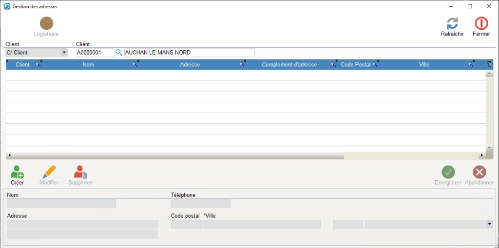 Adresses livraison client