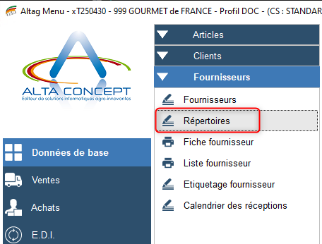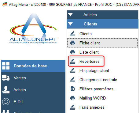 Données de base > Clients ou Fournisseurs > Répertoire