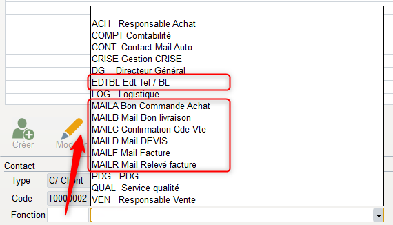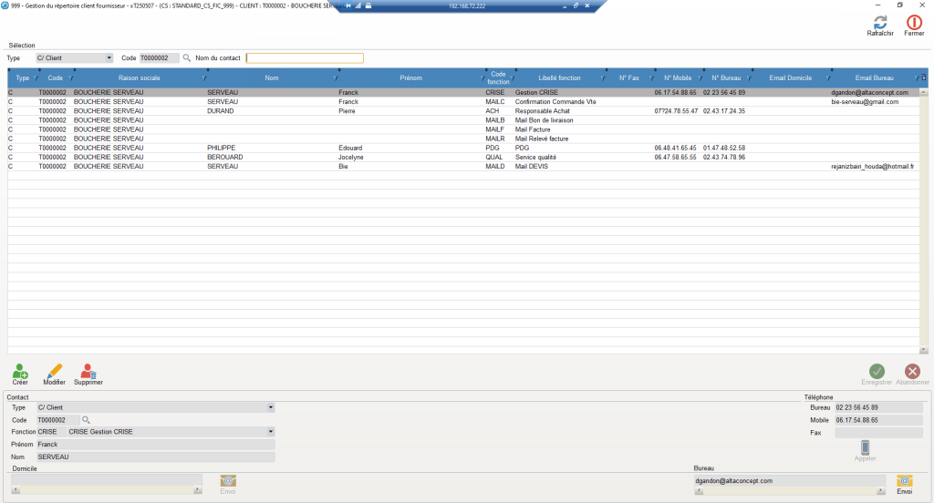 Permet d’enregistrer tous les contacts chez le client ou fournisseur, les fonctions des personnes (directeur, préparateur commandes, responsable expéditions…).