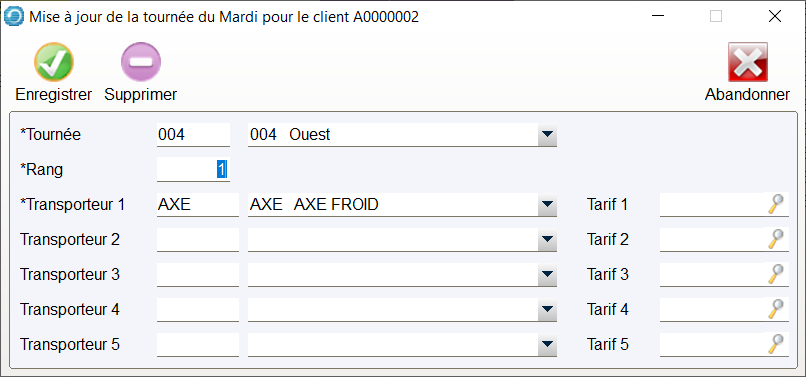 La Tournée, le Rang, le Transporteur et les Tarifs peuvent être modifiés.