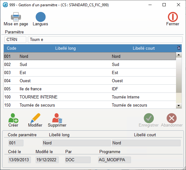 Ce Paramètre permet de créer des Codes Tournées permettant ainsi de planifier les Préparations de Commandes avec les Départs d’expédition.