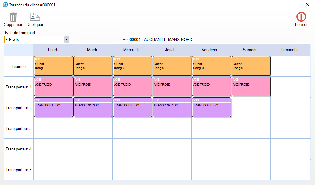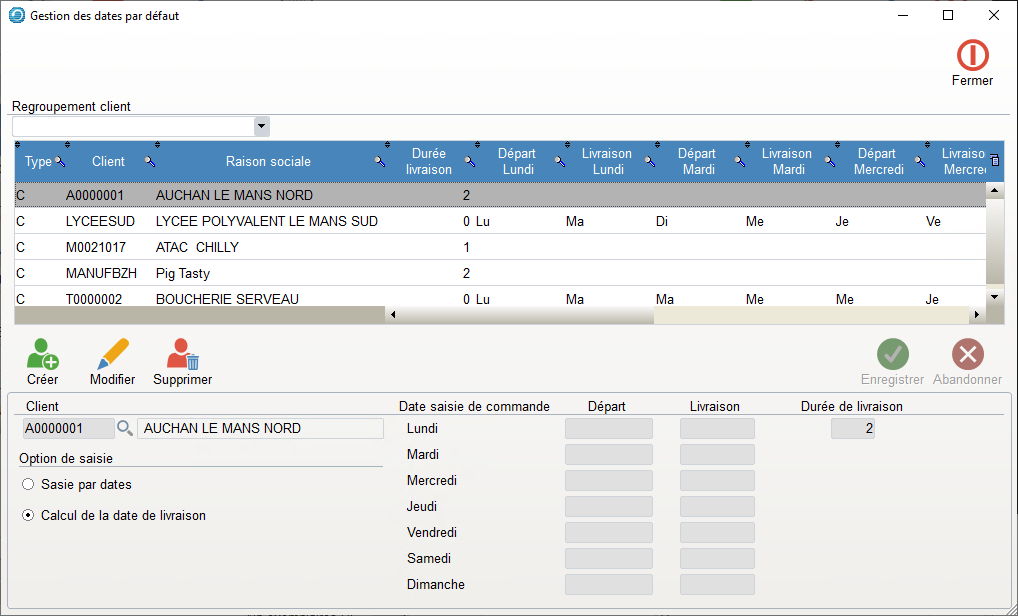 Pour chaque Client, et afin de déterminer les jours de Tournée par transporteur, ainsi que le Rang des Livraisons :