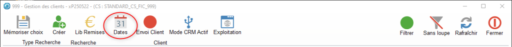 De la Fiche Client, dans le bandeau secondaire des boutons, cliquer sur le Bouton Date afin de déterminer les dates de départ et de livraison en fonction de la date de Saisie de Commande.