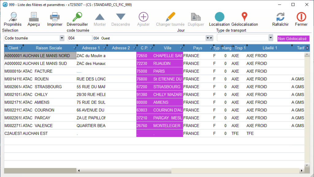 La gestion des Tournées permet également de calculer et de comparer les Coûts de Transport en fonction du Tarif du Transporteur, si le module Tarif Transport est retenu.