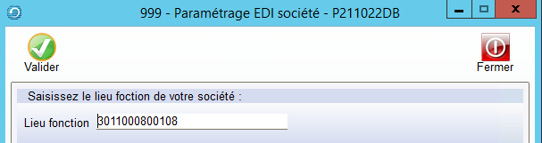 Renseigner le Lieu Fonction de votre société (fourni par GS1).