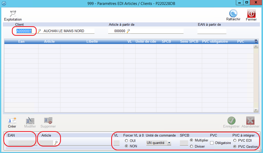 EDI > Paramétrage >> Articles/Client