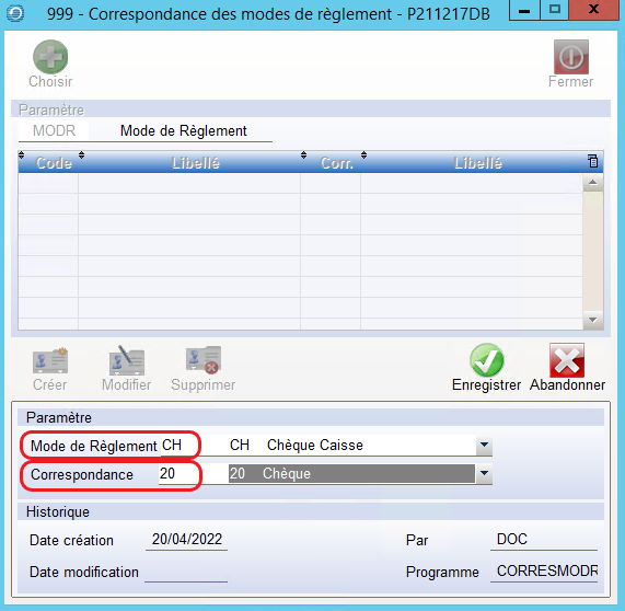 EDI > Paramétrage >> Modes Règlements