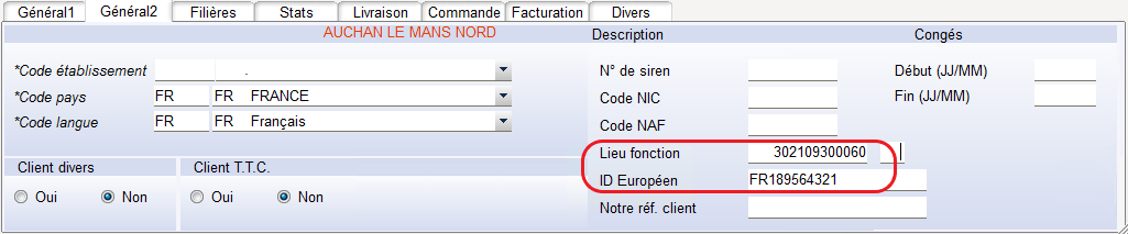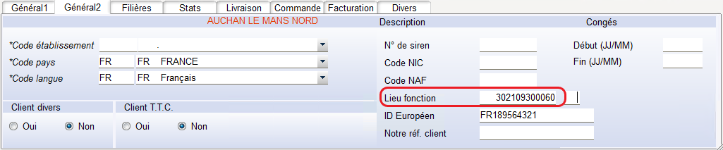 Renseigner le Lieu Fonction et l’Identifiant TVA du Client Facturé.