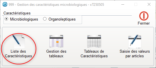 - Le module « Caract. Microbio. » permet de définir l’ensemble des micro-organismes pathogènes contenus dans les aliments afin lister les germes impliqués dans les intoxications alimentaires.