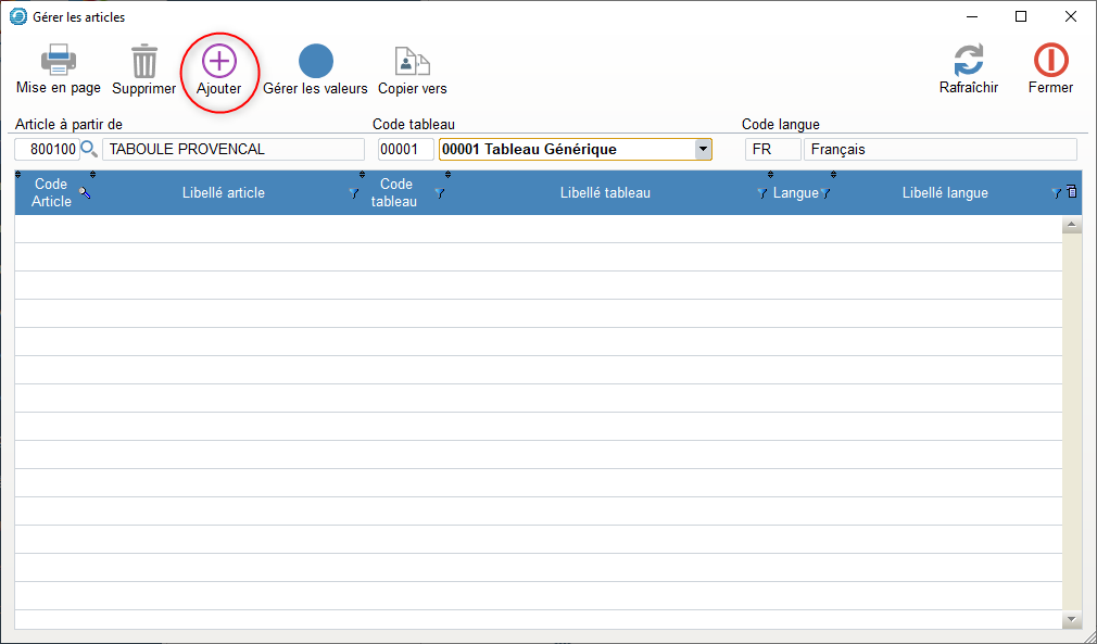 - Clique droit sur le champ de saisie du code Langue.
