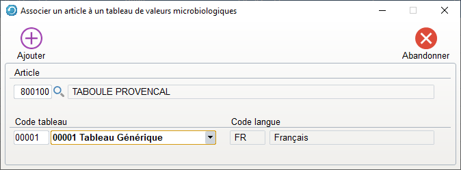 - Étape 2 : Création de l’association des caractéristiques microbiologiques par tableau et de l’article.