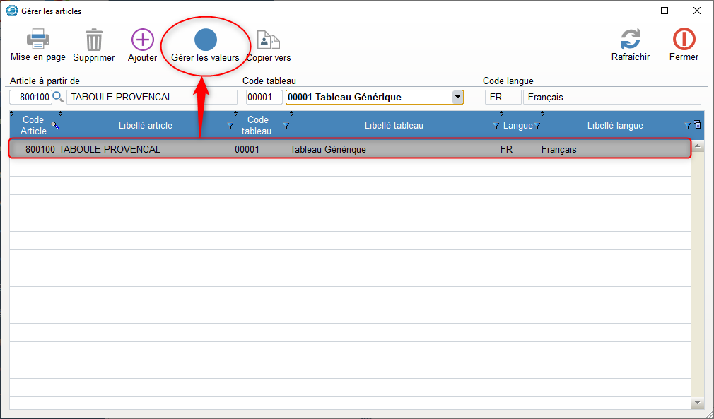 Saisie des valeurs par articles