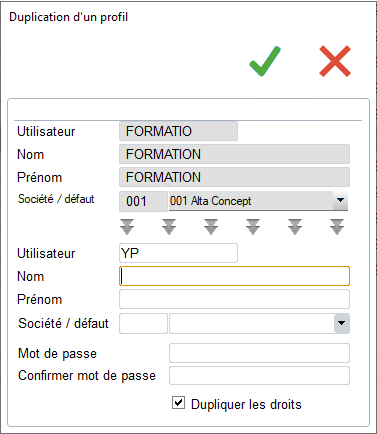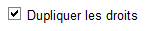 La zone Dupliquer les droits: En laissant cochée cette zone, tous les droits du profil dupliqué sont reconduits sur le nouveau profil créé.