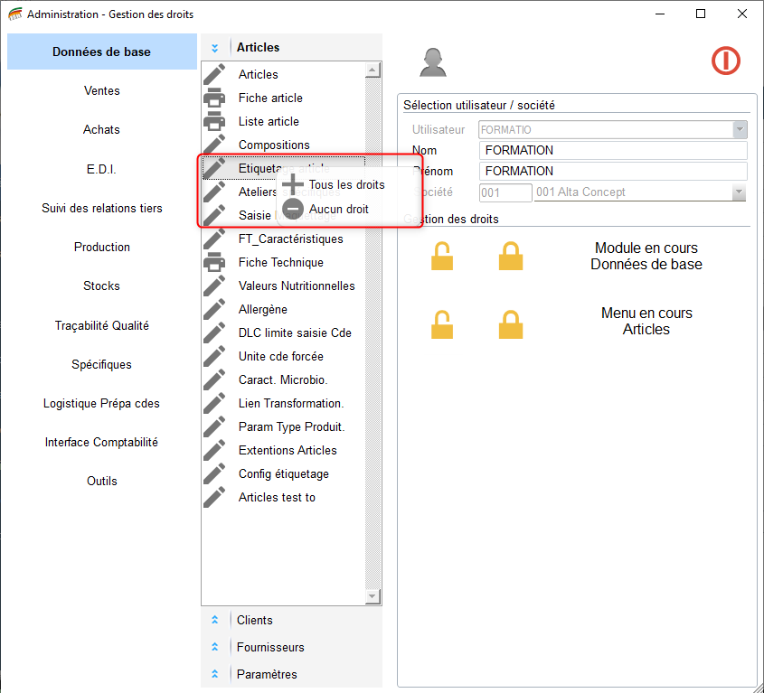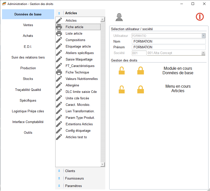 Le fait d’attribuer des profils à chaque utilisateur ou groupe d’utilisateurs (service, atelier), va vous permettre de sélectionner les modules, les menus, les options par poste, et ainsi de ne pas encombrer les différents écrans avec des données inutiles.