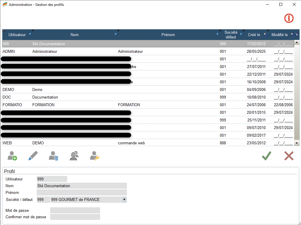 Créer: Permet de générer la liste de tous les utilisateurs ayant accès au logiciel.