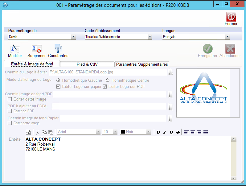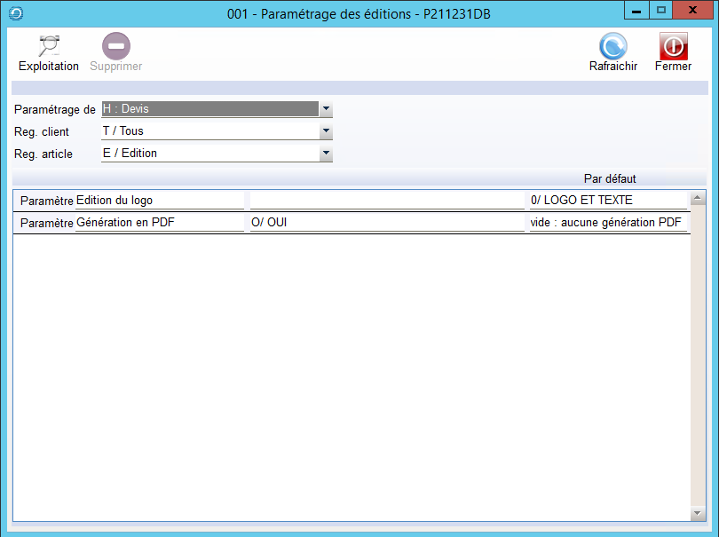 • Dans le Module Données de Base / Paramètres / Param edt documents
