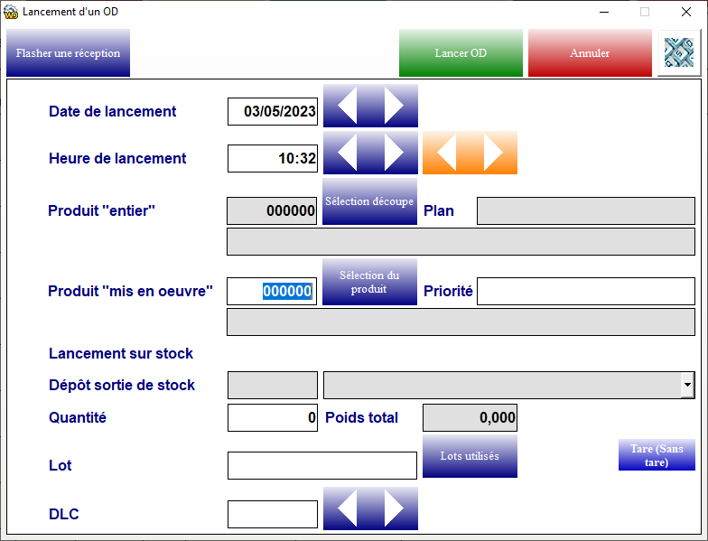 Après avoir cliqué sur le Bouton « Lancement d’un OD », il faut renseigner le Produit à partir duquel la Découpe se fera.