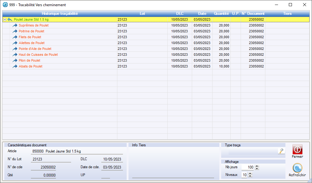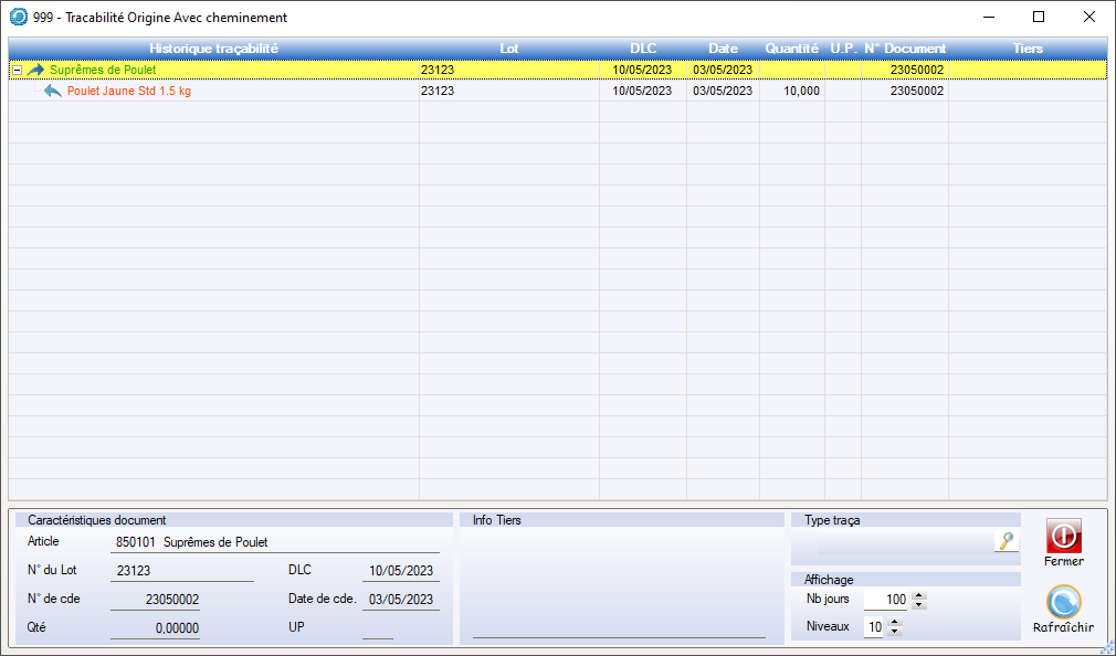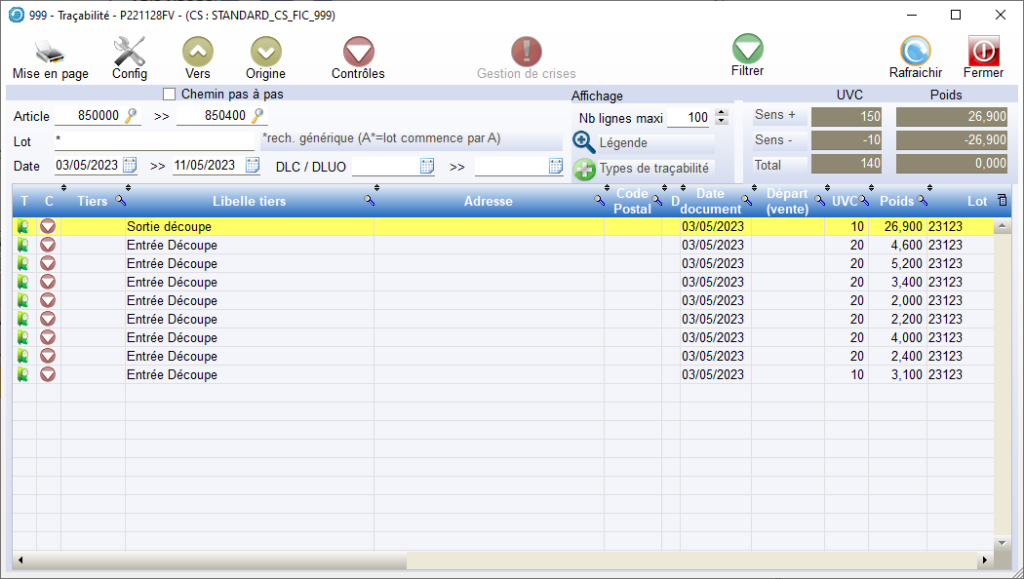 A contrario, en sélectionnant une Entrée Découpe, nous pouvons voir sa provenance.