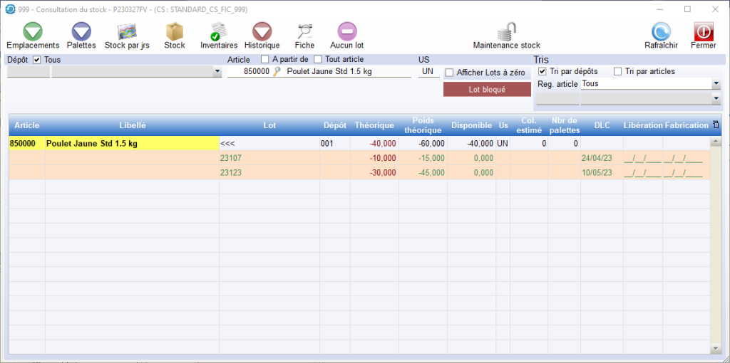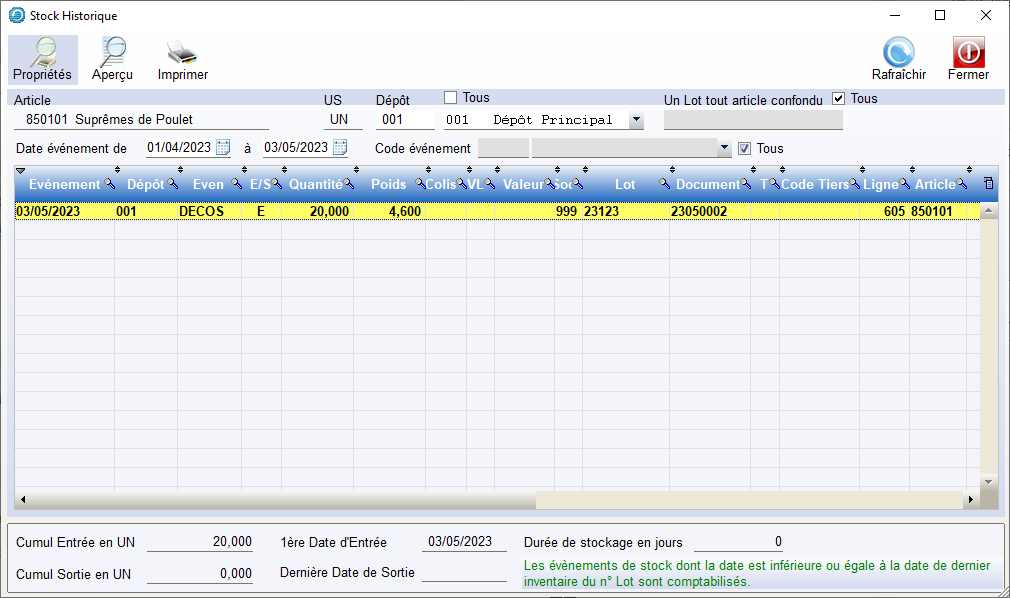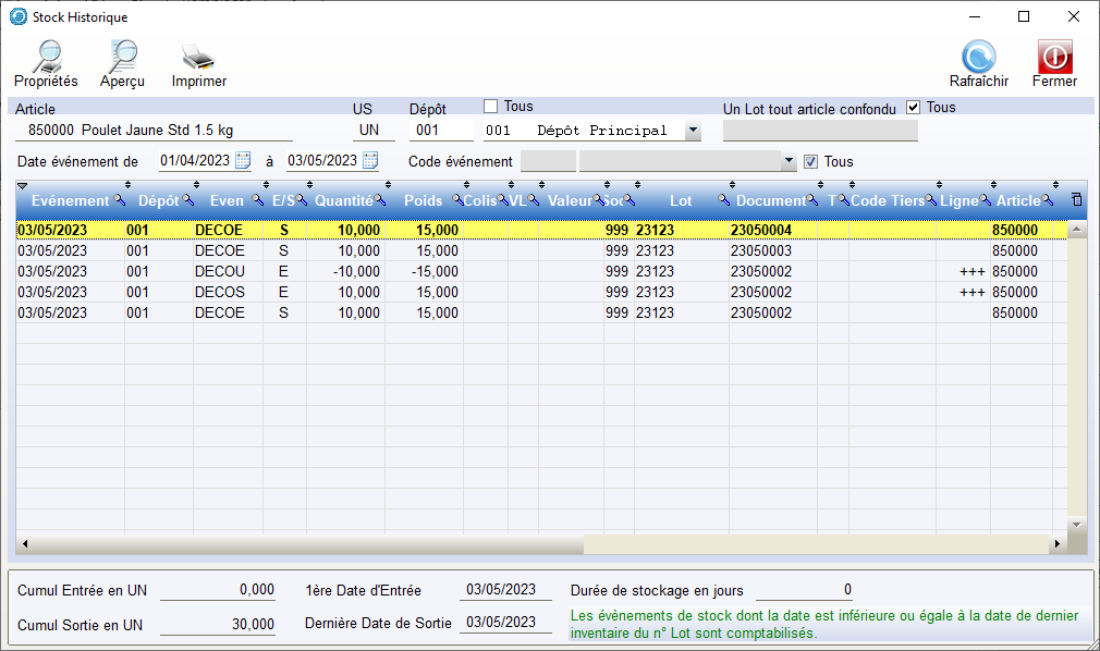 La consultation du Stock permet de s’assurer que tous les mouvements (Entrées et Sorties) ont été pris en compte.