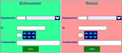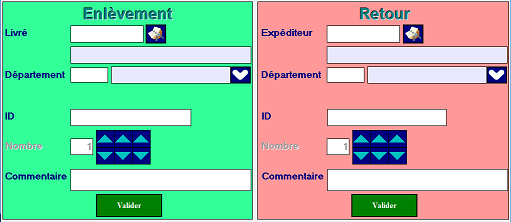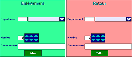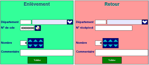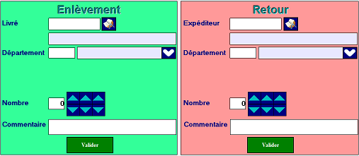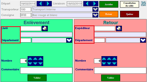- Aussi bien pour la partie « Enlèvement » qu’à la partie « Retour » , une remise à blanc des champs sera effectuée pour permettre la saisie en masse.