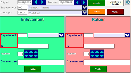 - Insérez l’ID du Pall Box dans la partie Enlèvement et/ou dans la partie retour,