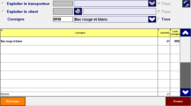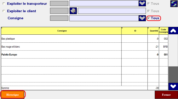 - Pour avoir le solde total de toutes les consignes ,décochez Tous seulement.