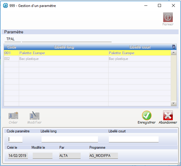 Paramétrage
