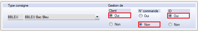 - « Type de consigne « bac bleu » que l’on veut suivre par client et par numéro d’ID. »