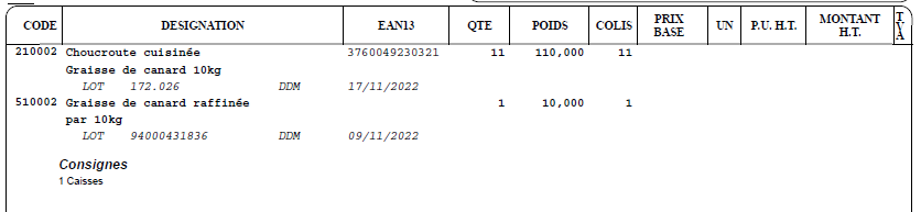 Les consignes de type ‘commande’ peuvent être éditées en fin de bon de livraison,
