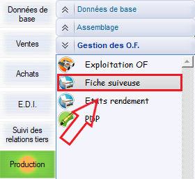 Le chemin d’accès : Production > Gestion des O.F. > Fiche Suiveuse