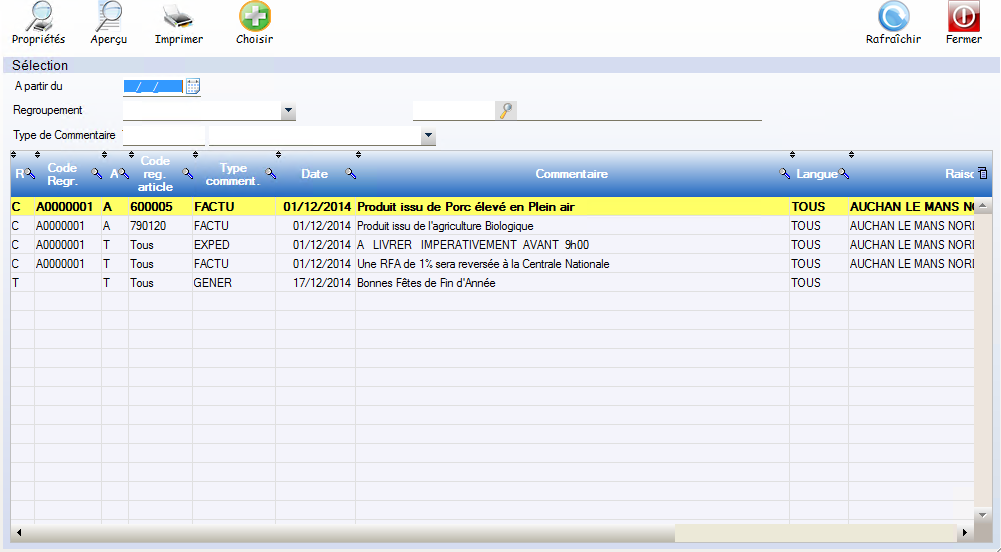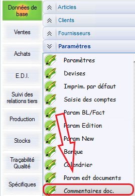 Permet de paramétrer des commentaires qui seront imprimés sur les documents commerciaux.
