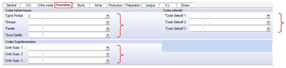 On peut utiliser tous les regroupements de l’onglet Paramètres de la fiche Article