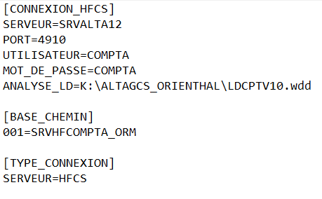 Indiquer le Code Société et le Nom de la BDD LD Compta (exp : 001=SRVHFCOMPTA_ORM)