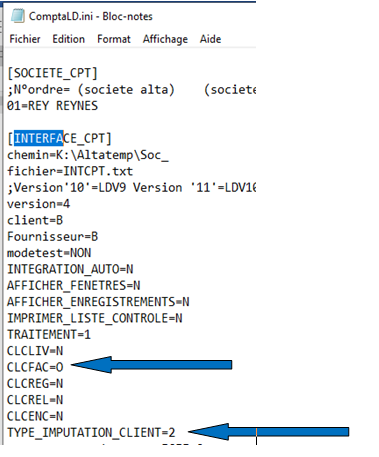 **Règle de paramétrage du Type de Client à envoyer sur les Factures de Vente : Paramétrage dans ComptaLD.ini et Chapitre [INTERFACE_CPT], Choisir quel Type Client on envoie : le Client Livré, le Client Facturé, le Client Réglé, le Client Relevé ou le Client Encours. Le plus fréquent étant le Client Facturé.
